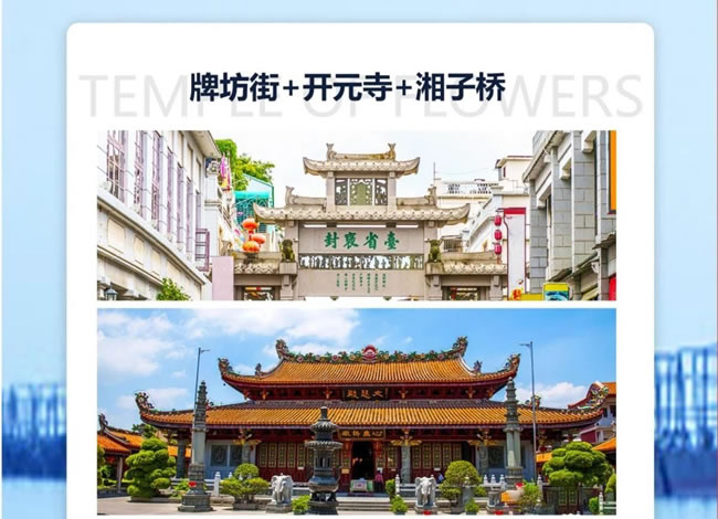 早餐后游覽【開(kāi)元寺】(游覽時(shí)間不低于30分鐘)位于鯉城區(qū)西街,是中國(guó)東南沿海重要的文物古跡,也是福建省內(nèi)規(guī)模較大的佛教寺院。該寺始創(chuàng)于唐初垂拱二年(686年),初名蓮花道場(chǎng),開(kāi)元二十六年(738年)更名開(kāi)元寺。現(xiàn)存主要廟宇系明、清兩代修建,南北長(zhǎng)260米,東西寬300米,占地面積78000平方米?!疚鹘帧浚ㄓ斡[時(shí)間不低于30分鐘)是泉州較早開(kāi)發(fā)的街道和區(qū)域,早在宋朝,它就已經(jīng)象征了泉州的繁榮,它還是泉州市區(qū)保存較完整的古街區(qū),保留著大量具有歷史原貌的建筑。前往前往【蟳埔村】(游覽時(shí)間不低于60分鐘),蟳埔村位于福建省泉州市豐澤區(qū)東海社區(qū)的一條小漁村,這里居住的是古時(shí)阿拉伯人的后裔。這里的女人們頭上戴著鮮花做的漂亮的簪花圍,戴著丁香耳墜,穿著大裾衫、寬腳褲,形成了一道獨(dú)特的風(fēng)情,她們和惠安女、湄州女一起并稱福建三大漁女,這里還有別具特色的民居“蚵殼厝”。體驗(yàn)潯埔村地方民俗,風(fēng)土人情?!九抠?zèng)送插花,體驗(yàn)潯埔漁村民俗】隨后前往平潭酒店入住休息。