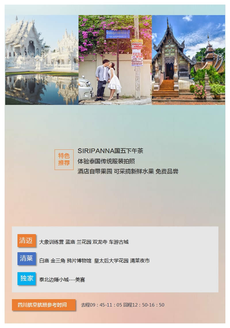 當(dāng)前位置:首頁 > 特色旅游 > 其它 > 歡樂小城&清邁清萊?6天5晚